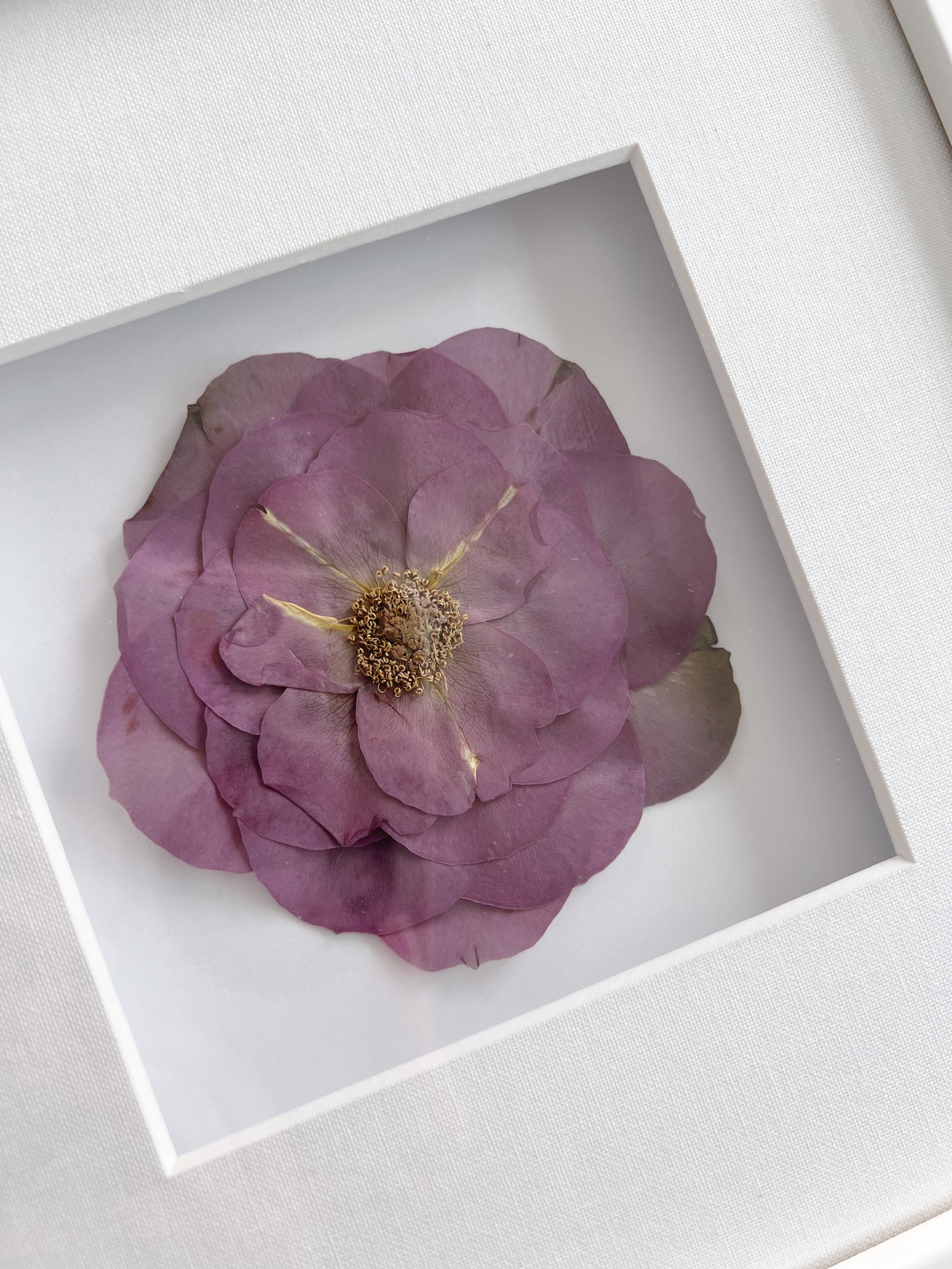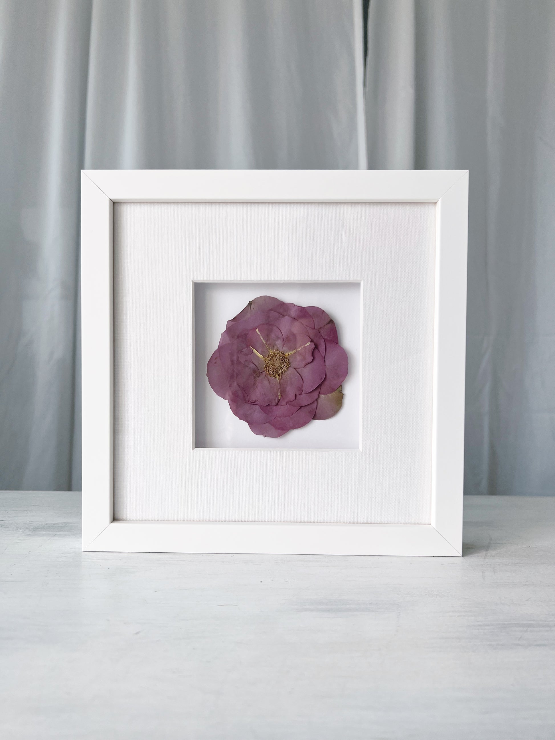 Choose a single flower to press with professional matting and UV protected glass to help the flower retain color as it ages. Flower must be able to be pressed within the 4x4" display area.