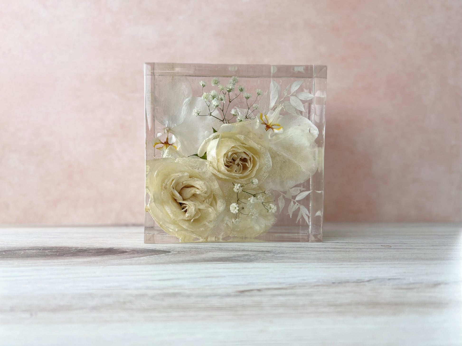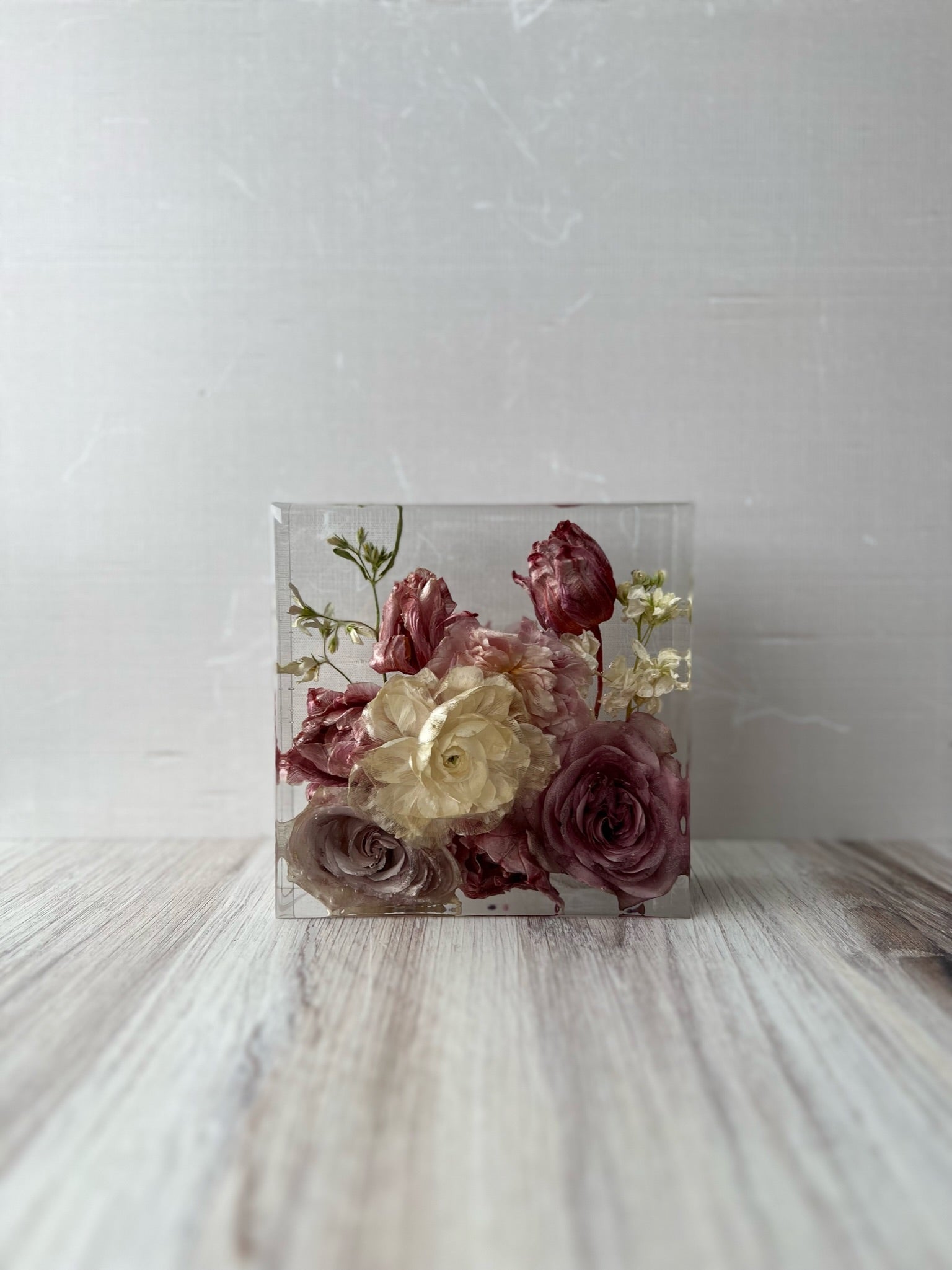 6x6 inch square resin box filled with a small sampler selection. One of our most popular sizes, the Louis is perfect for a nightstand or desk.