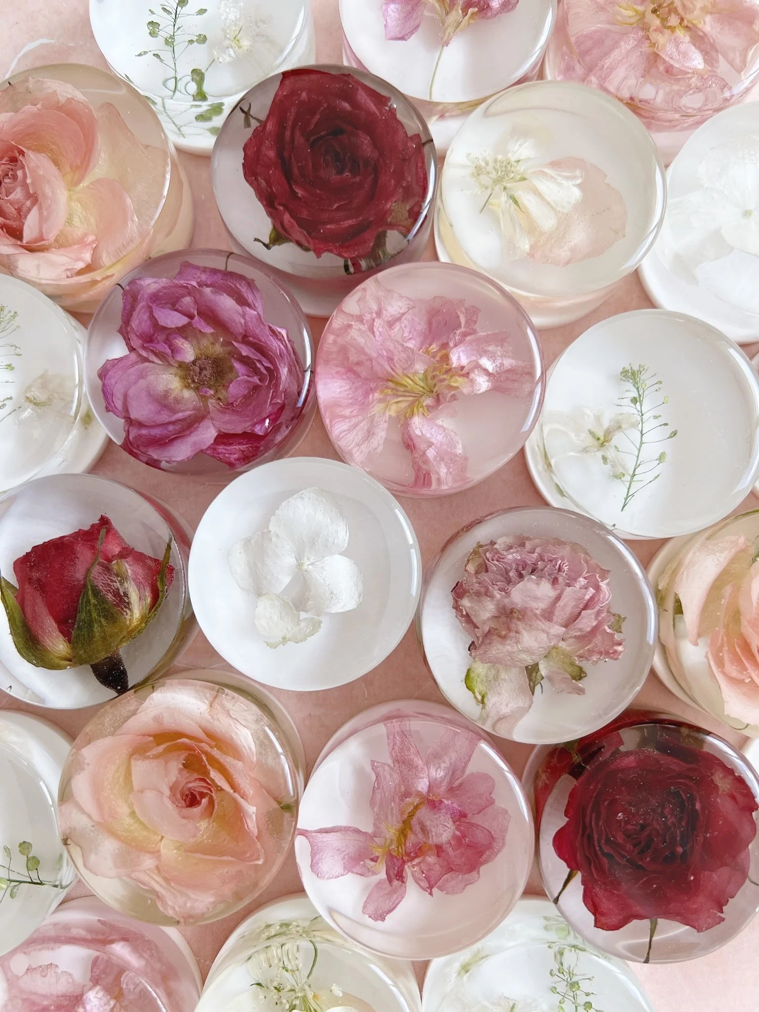 For custom order macaron magnets made with your special occassion botanicals, shop here.